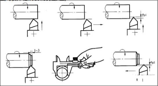即先試切出很小部分加工表面,測(cè)量試切所得的尺寸,按照加工要求適當(dāng)調(diào)刀具切削刃相對(duì)工件的位置,再試切,再測(cè)量,如此經(jīng)過(guò)兩三次試切和測(cè)量,當(dāng)被加工尺寸達(dá)到要求后,再切削整個(gè)待加工表面。